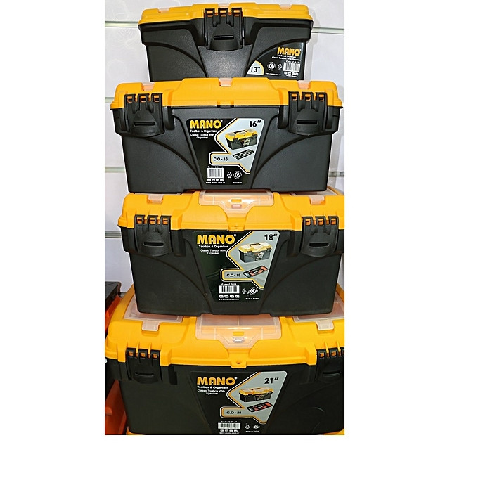 Caisse a outils plast (orange-noir) 21″” ref : c.o 21 ** MANO