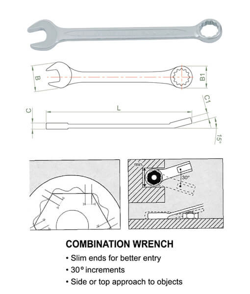 CLÉ MIXTE STANDARD – MÉTRIQUE chromee